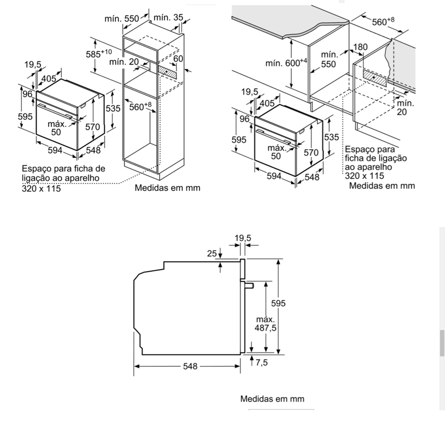 Dimensões do aparelho (AxLxP): 595 x 594 x 548 mm