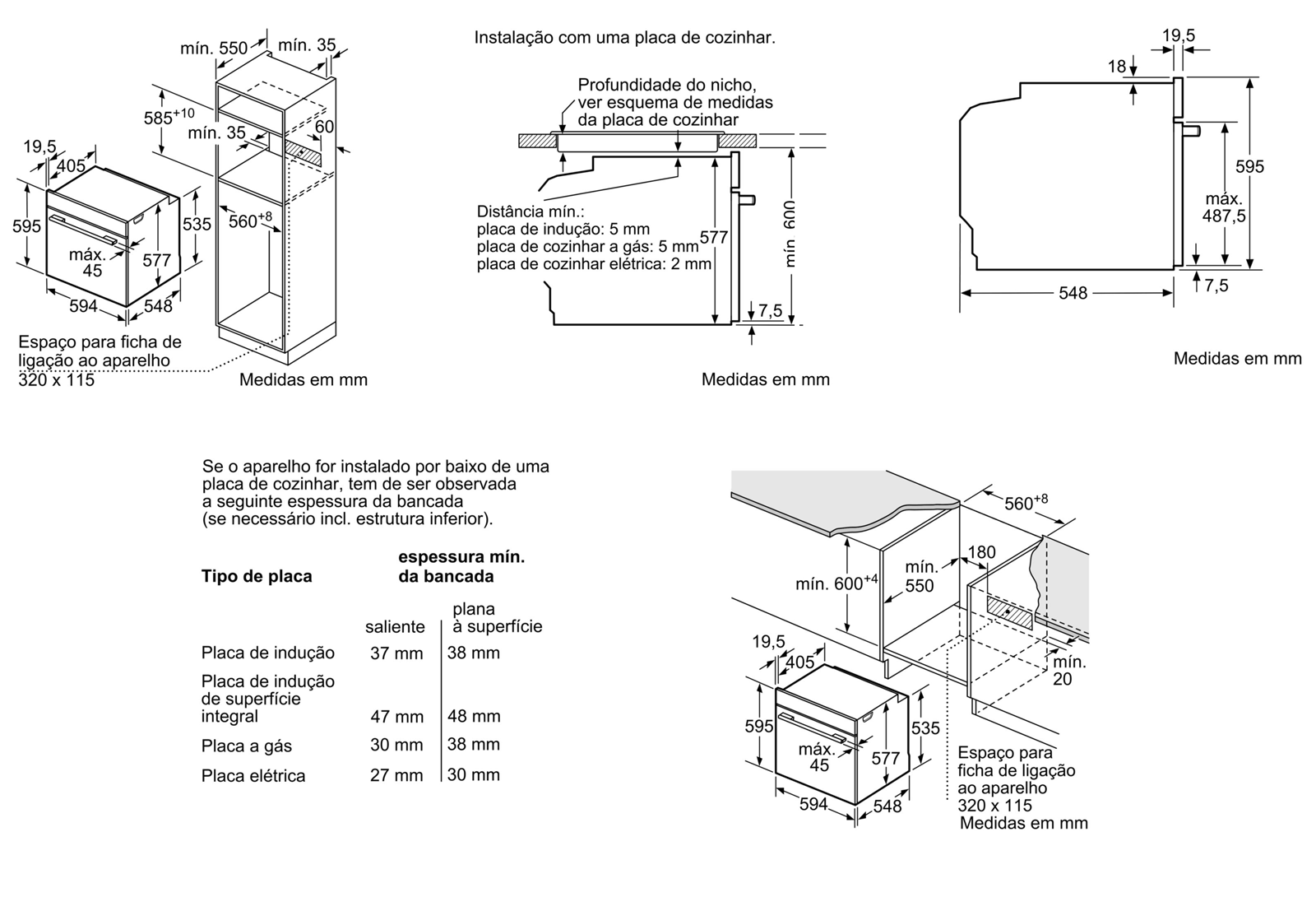 Dimensões do nicho (AxLxP): 585-595 x 560-568 x 550 mm