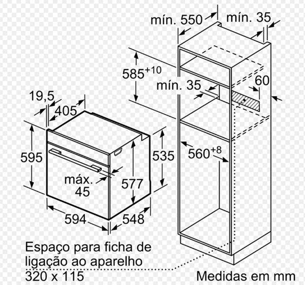 Dimensões do aparelho (AxLxP): 595 x 594 x 548 mm