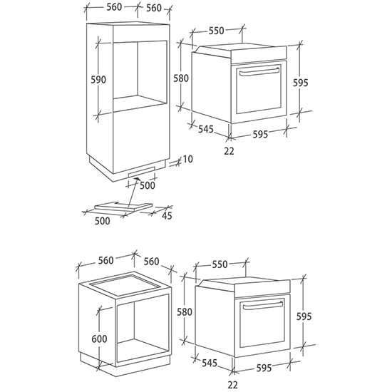 Dimensões necessárias para o encastre AxLxP: 59x56x56 cm