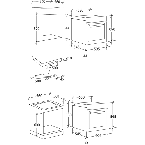 Dimensões necessárias para o encastre AxLxP: 59x56x56 cm