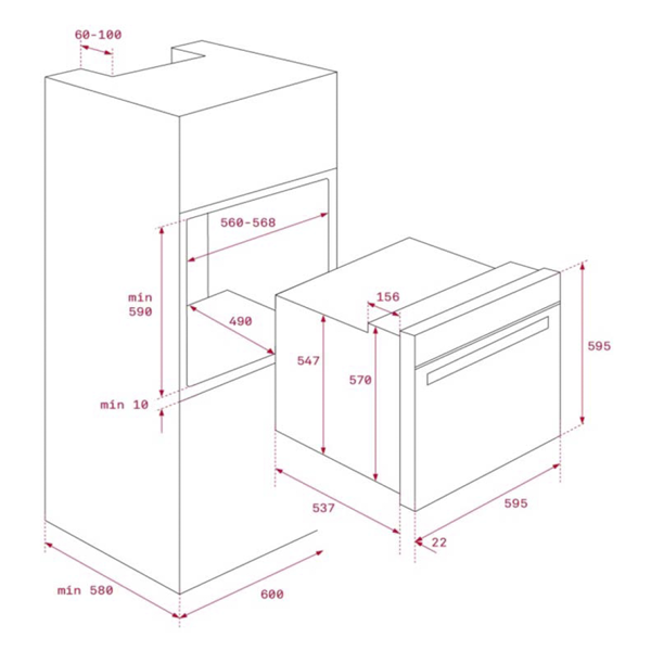 Medidas gerais (AxLxP): 595x595x537+22mm
