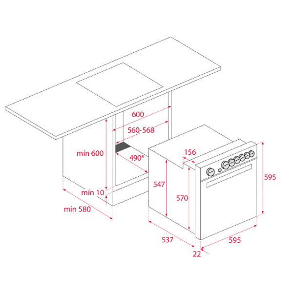 Medidas gerais (AxLxP): 595 x 595 x 537+22mm