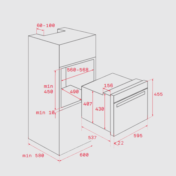 Suportes laterais cromados com 1 guia telescópica, 3 alturas de cozinhado
