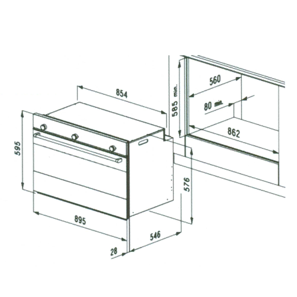 Forno eléctrico ventilado: 9 funções (luz, descongelação, grelhador, grelhador com ventilação, resistência superior, resistência inferior, resistência superior e inferior, resistência superior e inferior com ventilação, resistência circular)