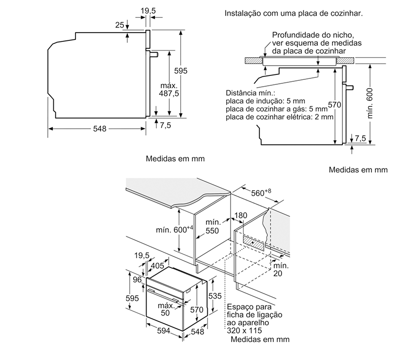 Dimensões do nicho (AxLxP): 585-595 x 560-568 x 550 mm
