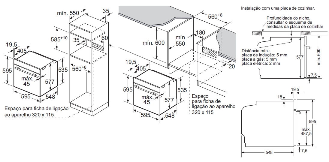 Dimensões do aparelho (AxLxP): 595 x 594 x 548 mm