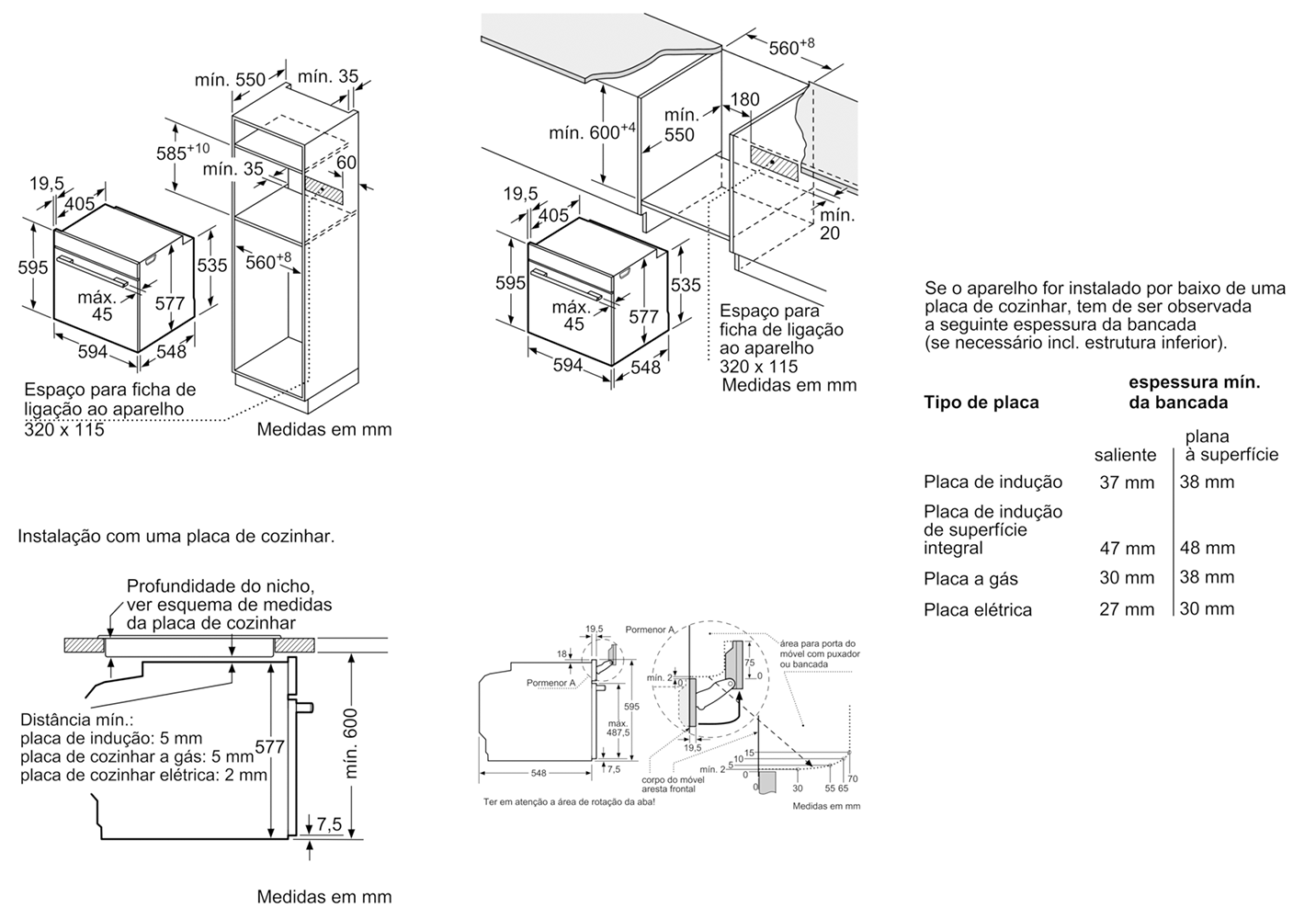 Dimensões do nicho (AxLxP): 585-595 x 560-568 x 550 mm