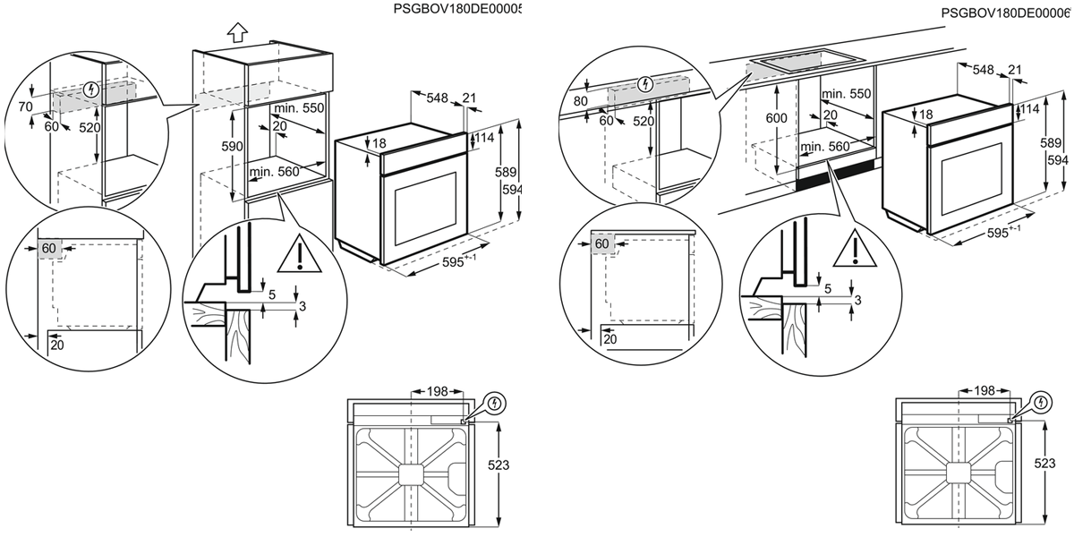 Dimensões de encastre (AxLxP), em mm: 600x560x550