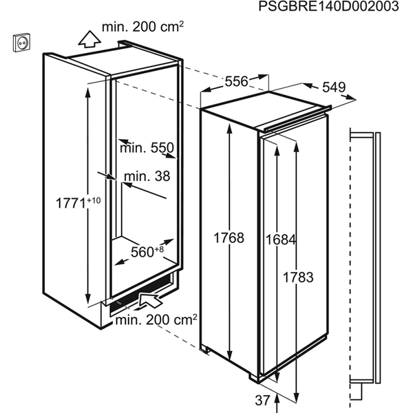 1780 mm altura encastre