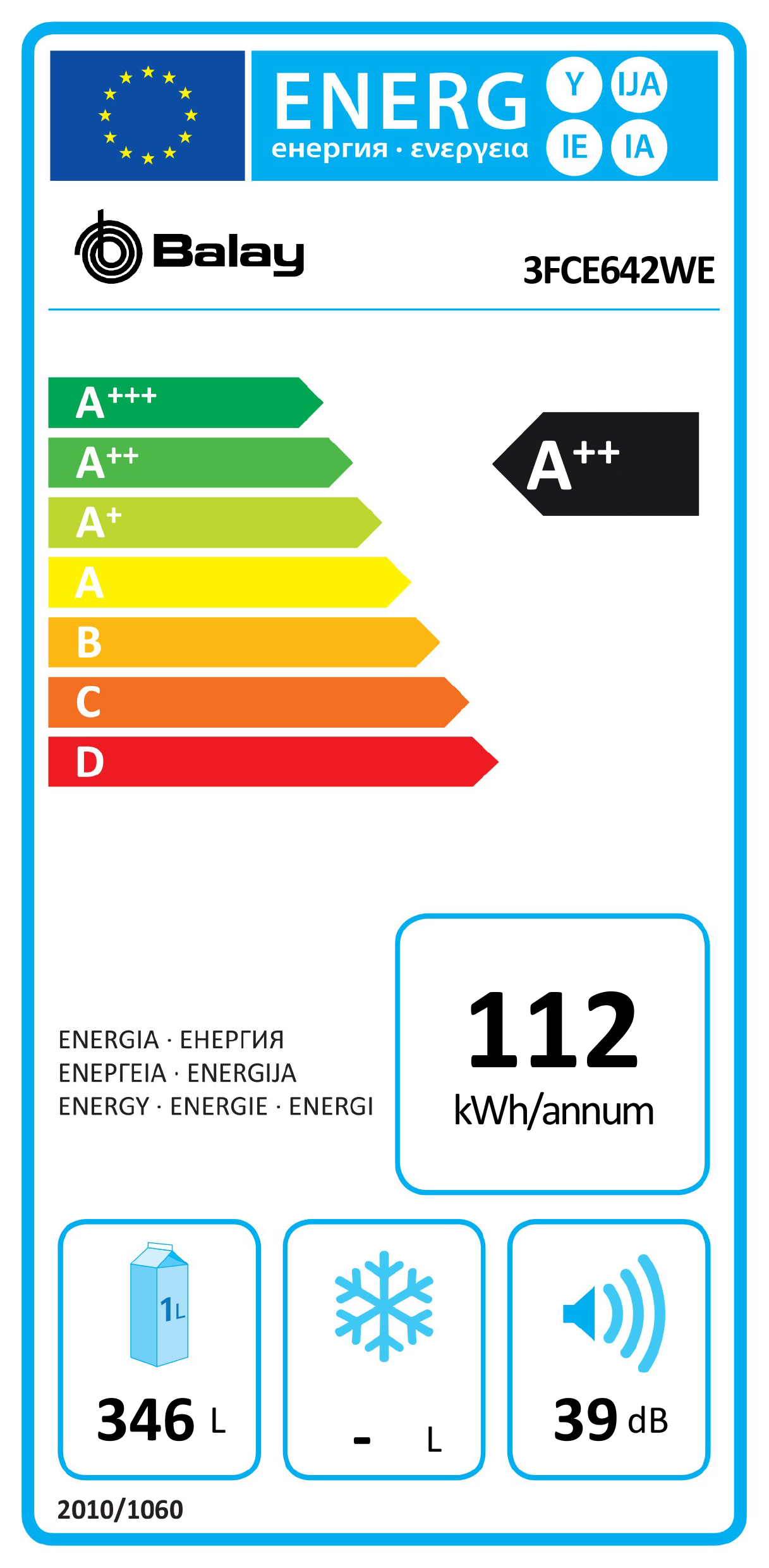 CLASSE A++ – (AXLXP) 186X60X65CM – 346LTS – BRANCO