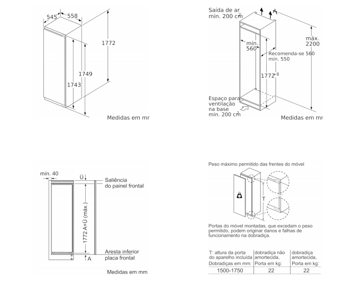 Aparelho (A x L x P sem puxador): 177.2 x 55.8 x 54.5 cm