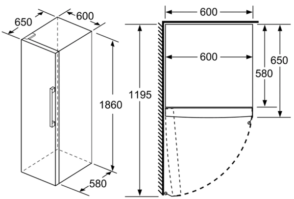 Aparelho (A x L x P sem puxador): 186 x 60 x 65 cm