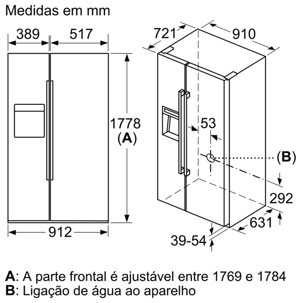 Aparelho (A x L x P sem puxador): 177.8 x 91.2 x 73.2 cm