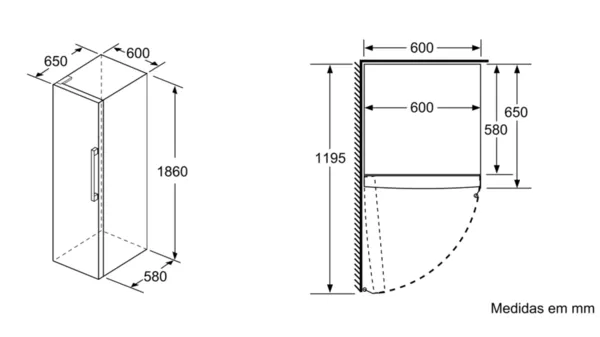Aparelho (A x L x P sem puxador): 186 x 60 x 65 cm