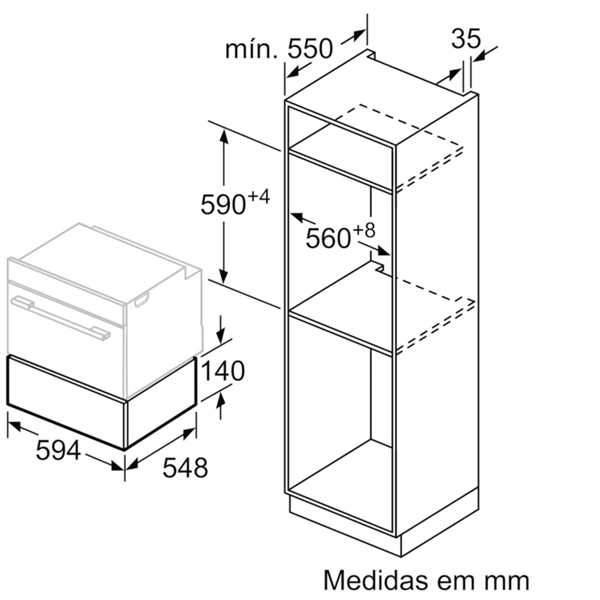 Dimensões do nicho de encastre (A x L x P): 140 mm x 560 mm – 568 mm x 550 mm
