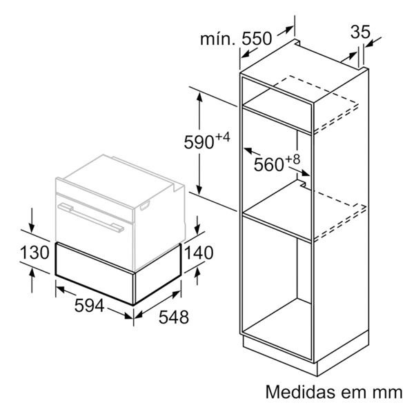Dimensões do nicho de encastre (A x L x P): 140 mm x 560 mm – 568 mm x 550 mm