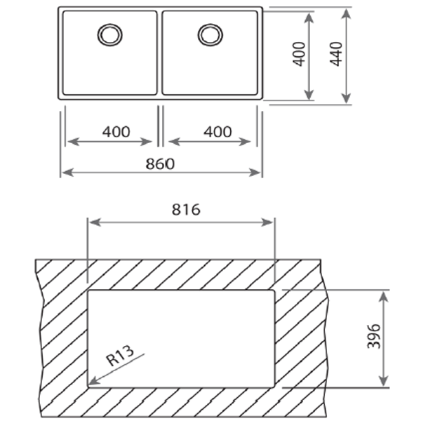 MEDIDAS EXTERNAS: 860X440MM – APLICAÇÃO SOB TAMPO – MÓVEIS: 90CM – INOX