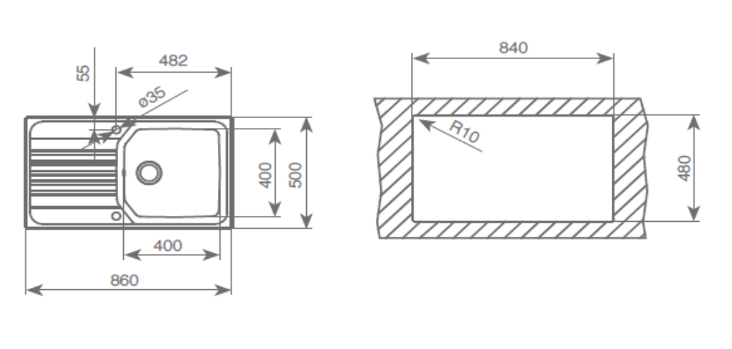 MEDIDA EXTERNA 860X500MM – APLICAÇÃO ENCASTRAR – MÓVEIS 50CM – INOX