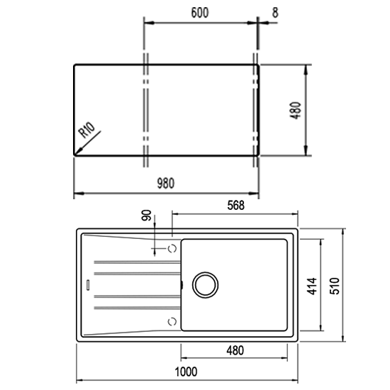 MEDIDAS (LXP) 1000x510MM – ENCASTRAR – MÓVEIS 60CM – TEGRANITO – CINZENTO ESCURO