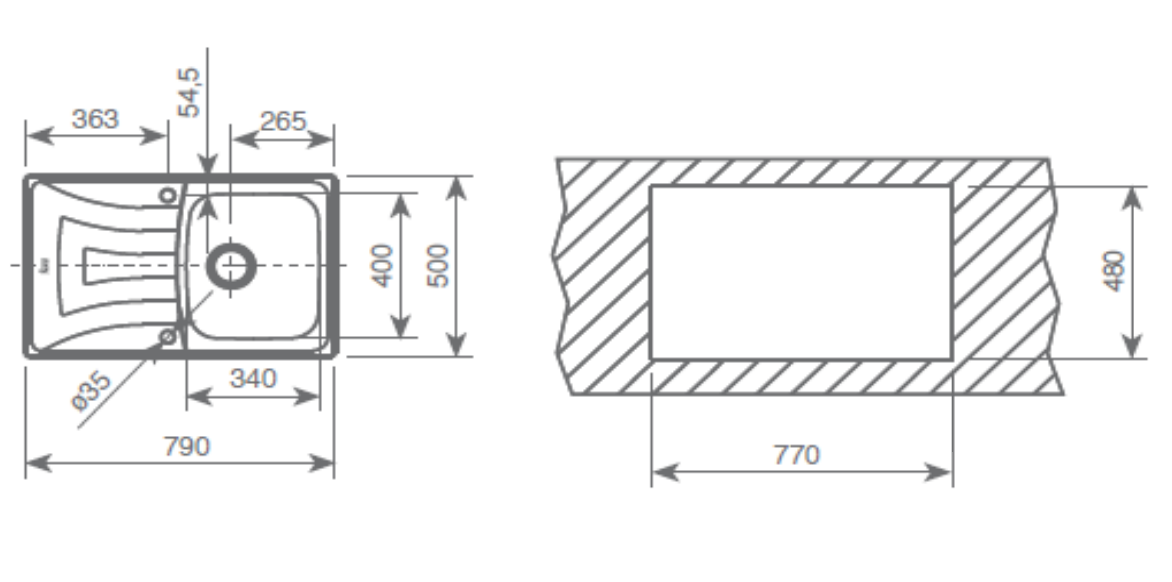 MEDIDA EXTERNA 790X500MM – ENCASTRE – MÓVEIS 45CM – INOX