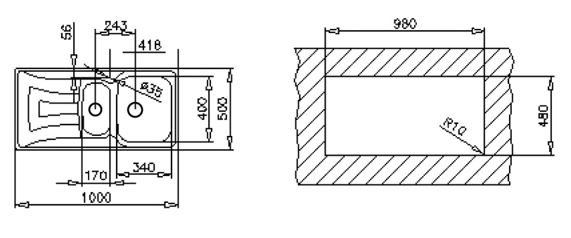 MEDIDA EXTERNA 500X1000MM – APLICAÇÃO ENCASTRAR – MÓVEIS 60CM – INOX