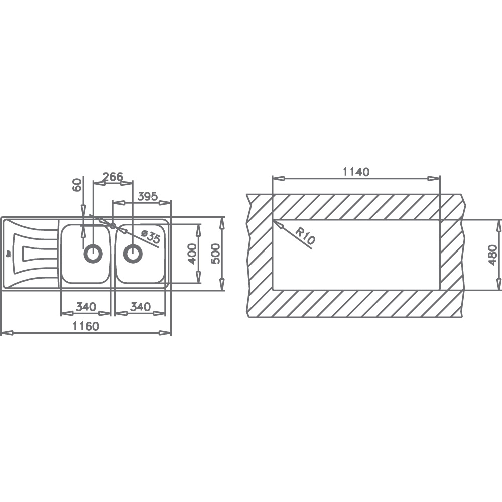 MEDIDA EXTERNA 1160X500MM – APLICAÇÃO ENCASTRAR – MÓVEIS 80CM – INOX
