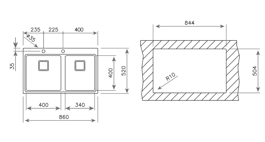 MEDIDA EXTERNA 860X520MM – APLICAÇÃO ENCASTRAR – MÓVEIS 90CM – INOX