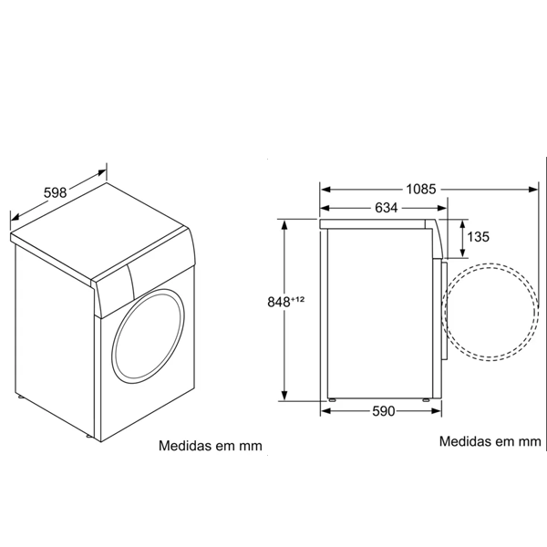 Capacidade de lavar/secar: 7 kg/4 kg