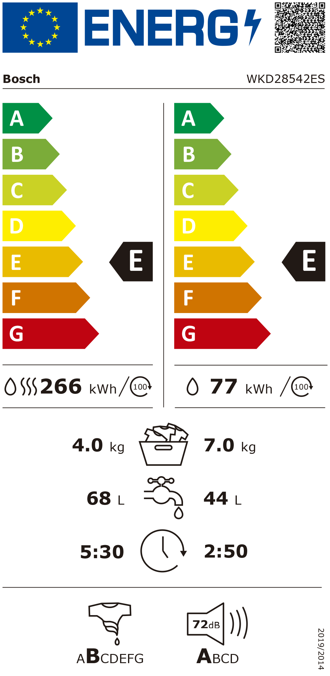 Classe de eficiencia energética Lavar e Secar: E