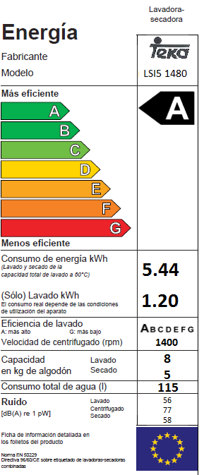 MÁQUINA DE LAVAR E SECAR ROUPA ENCASTRAR TEKA – LSI5 1480