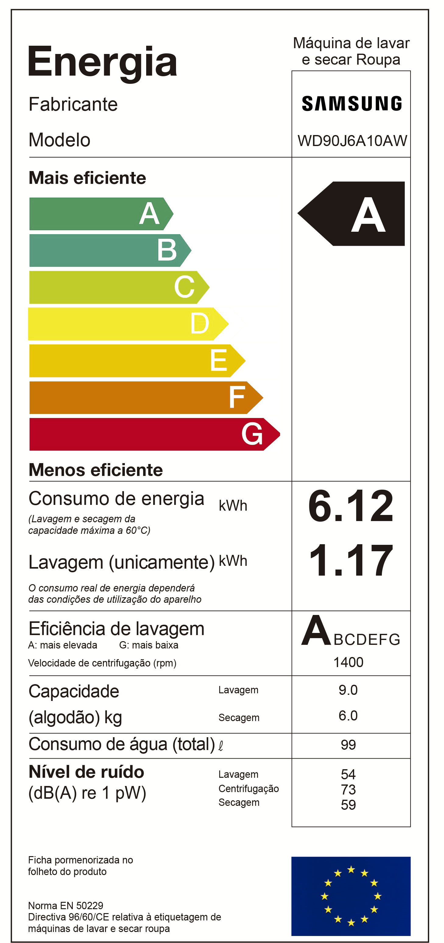 Consumo de Energia (por ciclo): 6.12 kWh