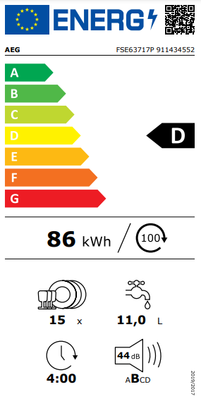 CLASSE D – LARGURA 60CM – 15 TALHERES – 7PROGRAMAS – 4 TEMPERATURAS