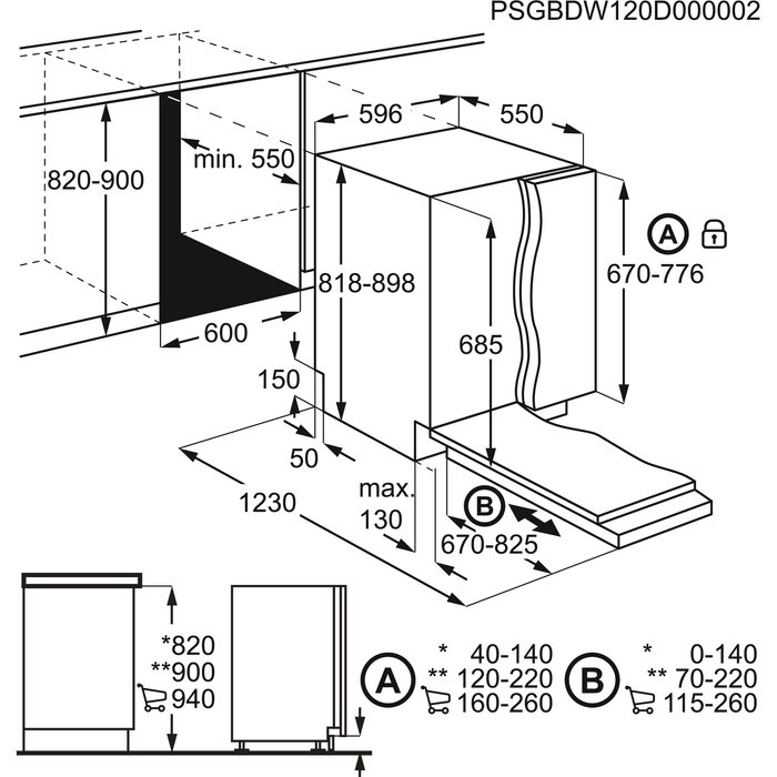 Profundidade, mm : 550