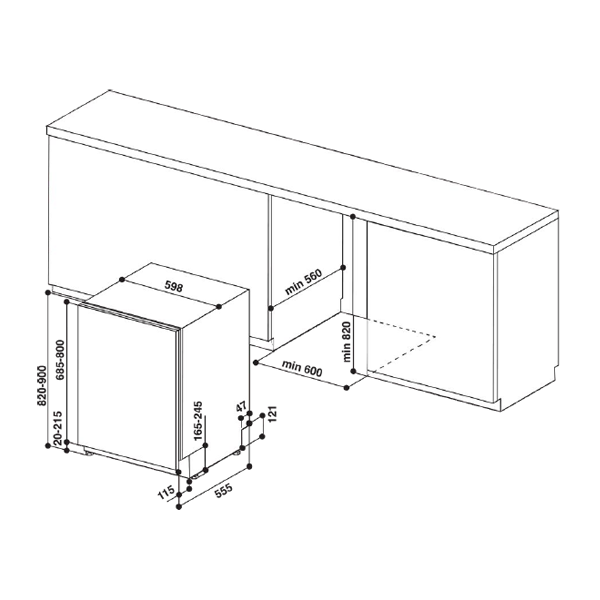 Medidas (axlxp): 820 a 900 x 598 x 555mm