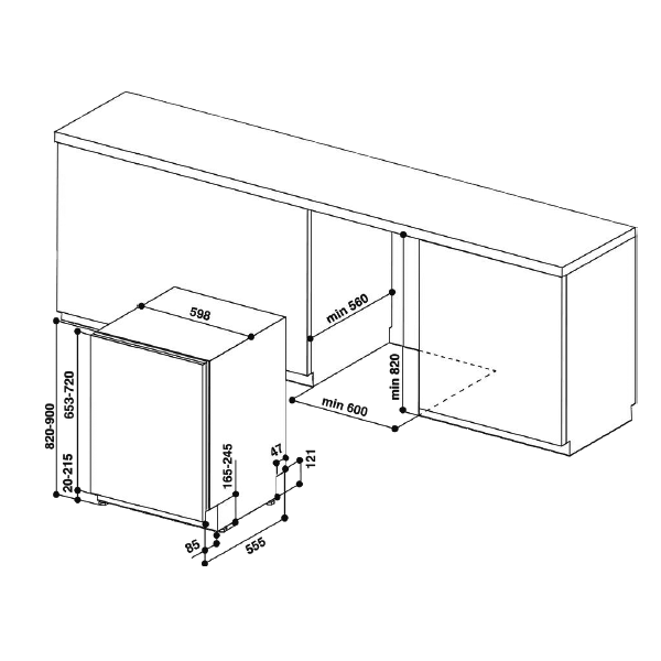 Medidas (AxLxP): 820 a 900 x 598 x 555mm