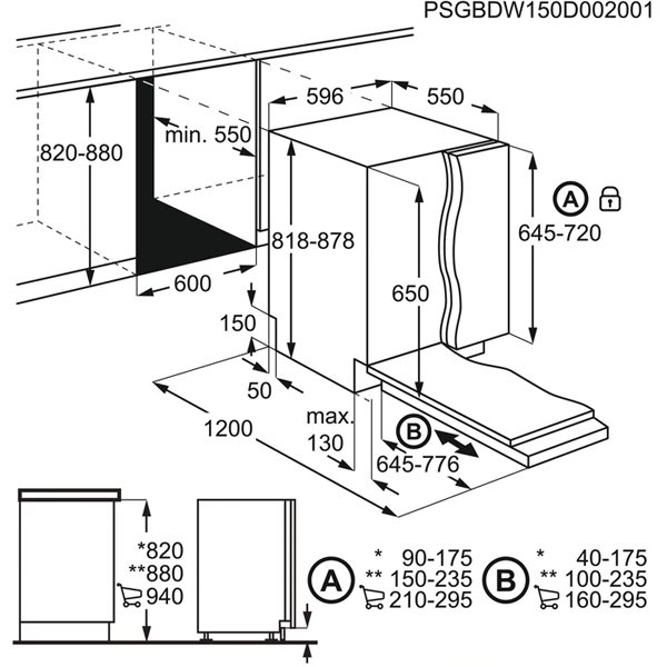 Dimensões (AxLxP), em mm: 818x596x550