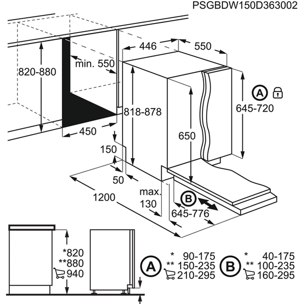 Dimensões (AxLxP), em mm: 818x446x550