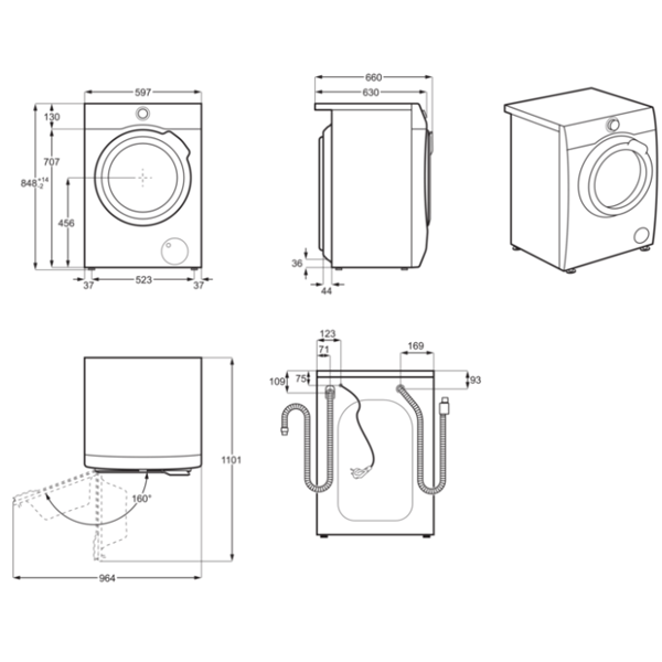 Capacidade de lavagem, kg: 9