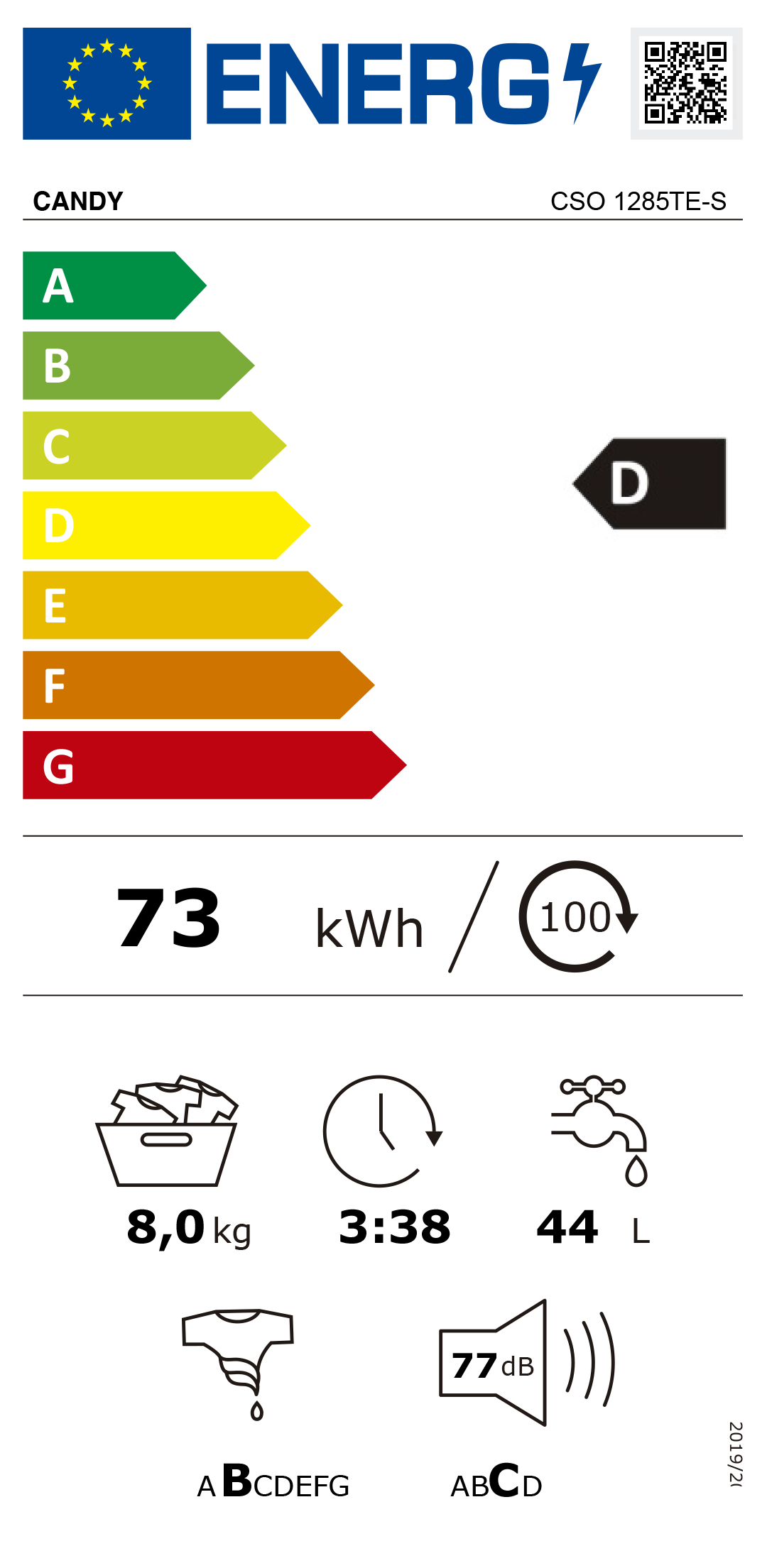 Consumo de energia por 100 ciclos: 73 kWh
