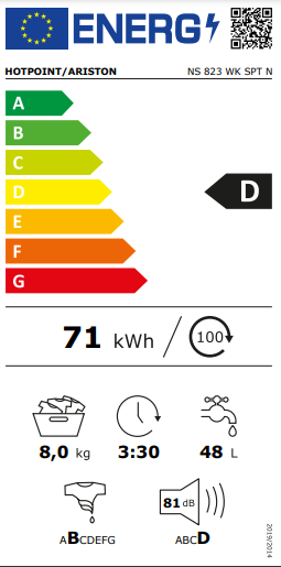 MÁQUINA DE LAVAR ROUPA HOTPOINT – NS 823 WK SPT N