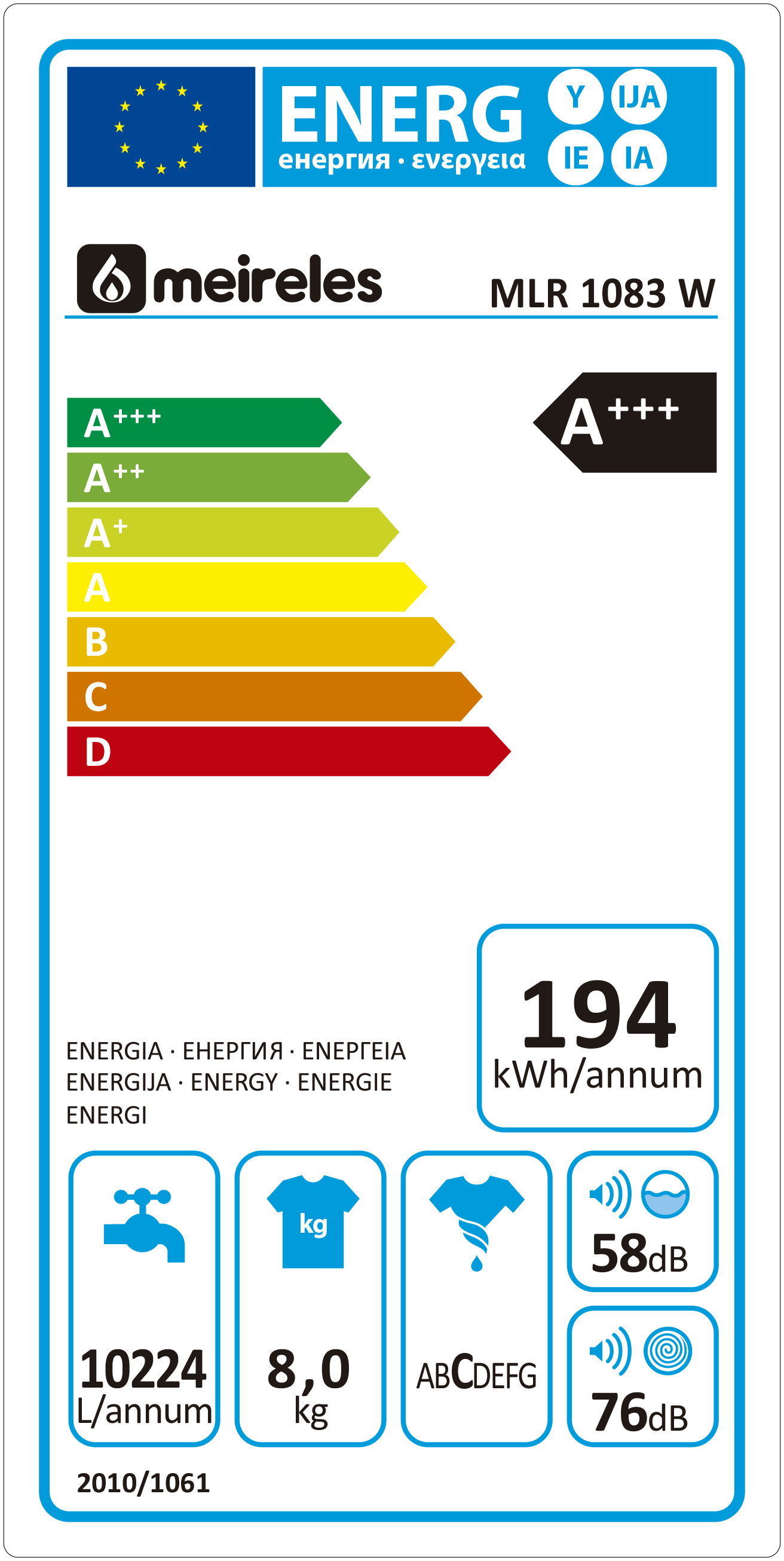 MÁQUINA DE LAVAR ROUPA MEIRELES – MLR 1083 W