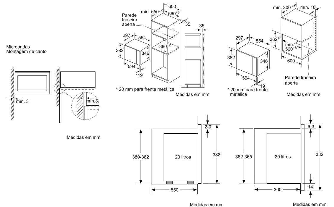Tipo de instalação: Integrável em armário superior de 60 cm de largura (mínimo 30 cm profundidade) e Integrável em armário alto