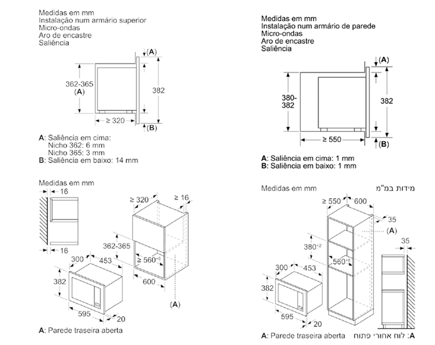 Integrável em armário superior de 60 cm de largura (mínimo 30 cm profundidade), Integrável em armário alto