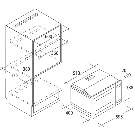 Dimensões necessárias para o encastre AxLxP 38X56X34 cm