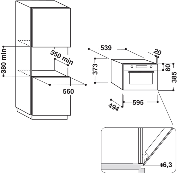 Largura mínima de instalação (mm): 556