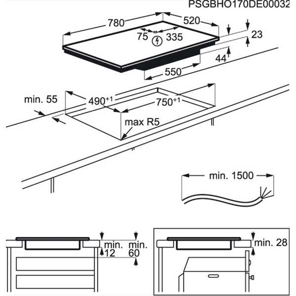 4 ZONAS INDUÇÃO – LARGURA 80CM – 7,35kW – PRETO – BISELADA