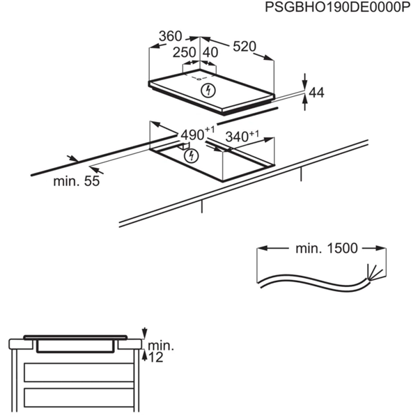 Dimensões de encastre (mm): 44x340x490