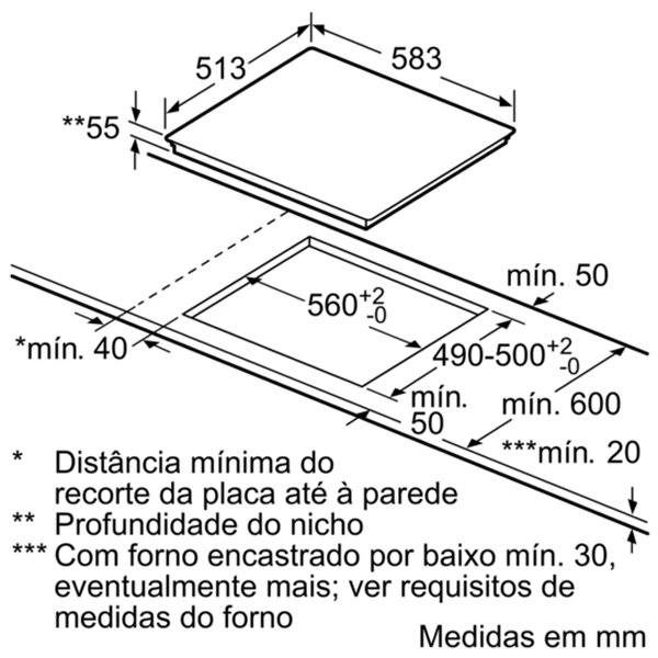 Nicho (AxLxP): 55 x 560-560 x 490-500 mm