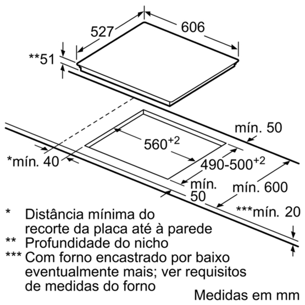 Espessura minima da bancada: 30 mm